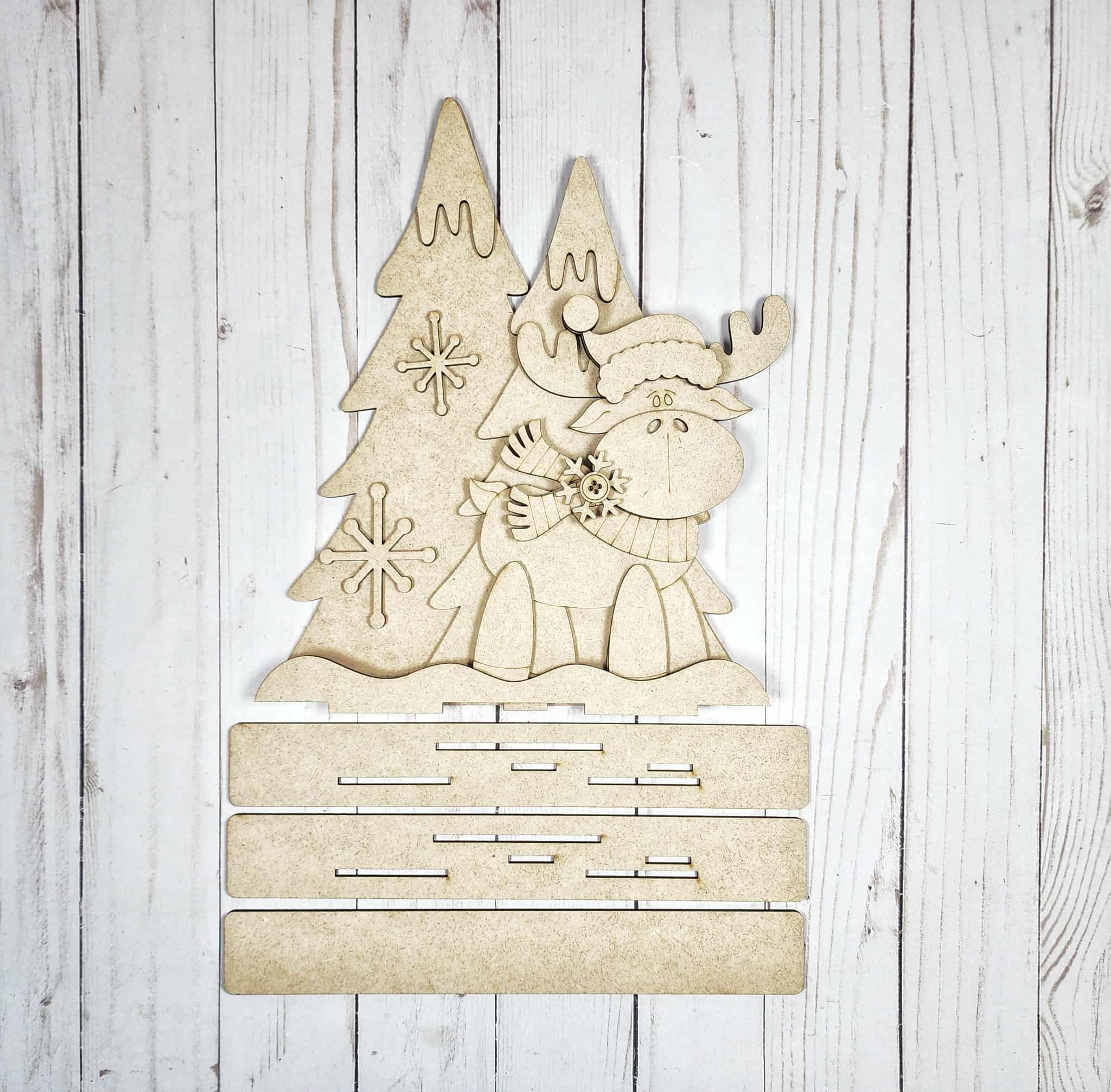 Celebrate the season with our Christmoose Standing Moose with Trees, a charming Christmas moose decor piece designed for shelf or tabletop display. Whether you are prepping for a holiday paint party or looking for a cozy winter craft, this kit provides everything needed to create a personalized festive accent.