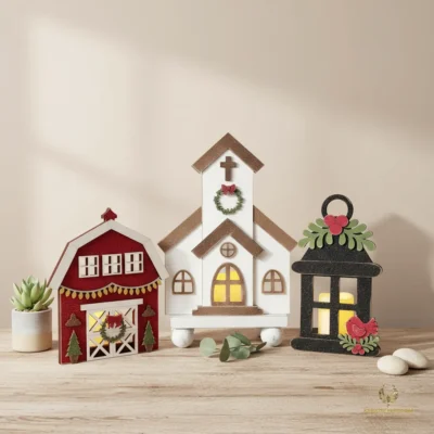 Elevate your holiday home decor with our Country Christmas Tree Farm Votives DIY Laser Cut Wood Kit. Designed to capture the nostalgia of a winter tree farm, these rustic votives are the perfect addition to a seasonal centerpiece, mantel, or entryway table. This kit offers a hands-on way to create professional-quality farmhouse decor that adds warmth and character to any room during the festive season.