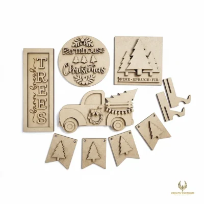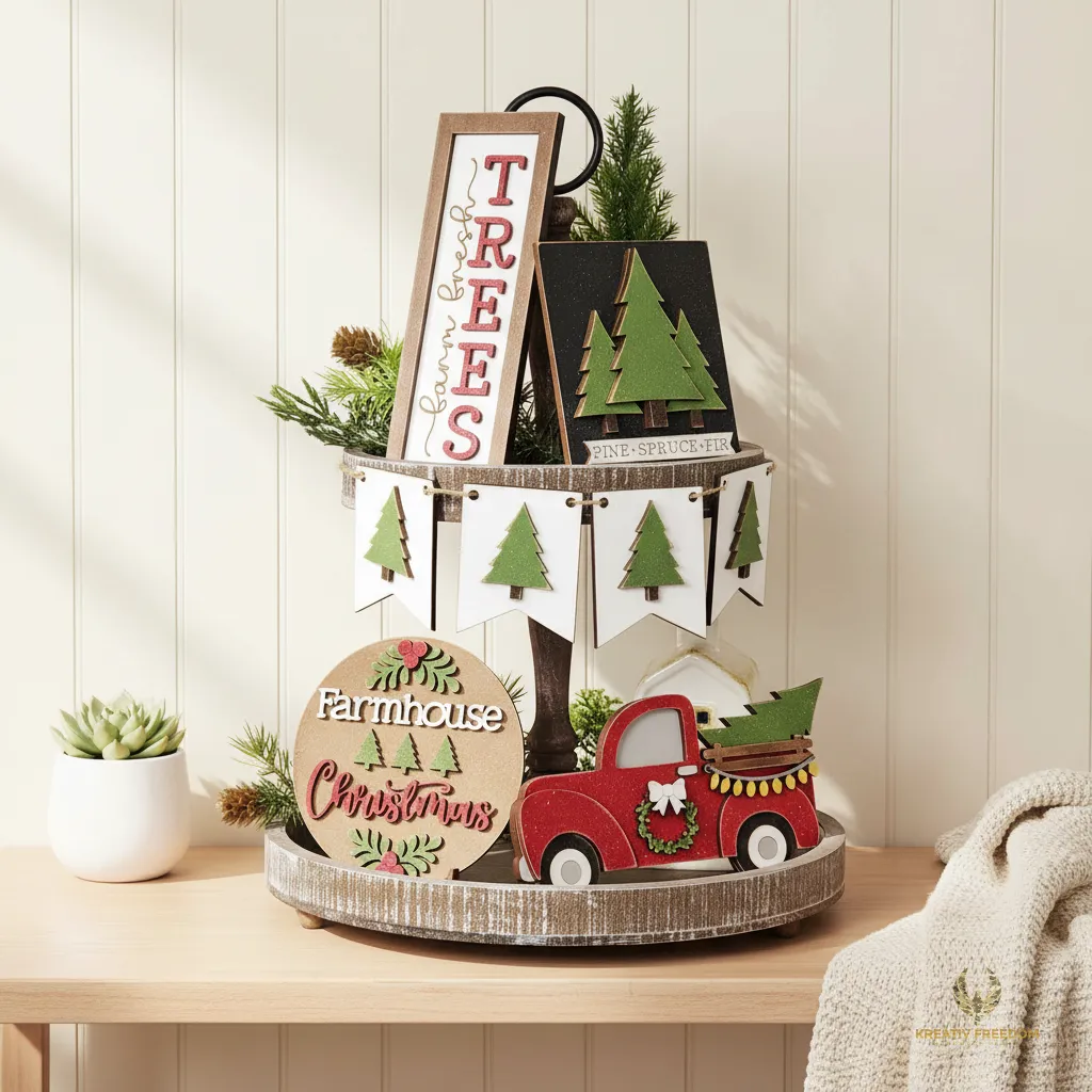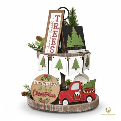 Transform your holiday display with our Farmhouse Christmas Tiered Tray DIY kit, featuring a charming Country Christmas Tree Farm theme. This set is designed to bring a cozy, rustic feel to any tabletop, shelf, or mantel, making it an essential piece for your seasonal home decor or a thoughtful handmade gift.