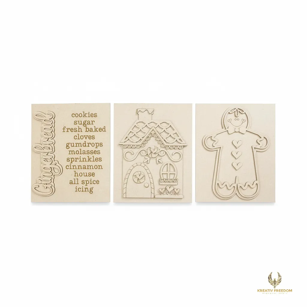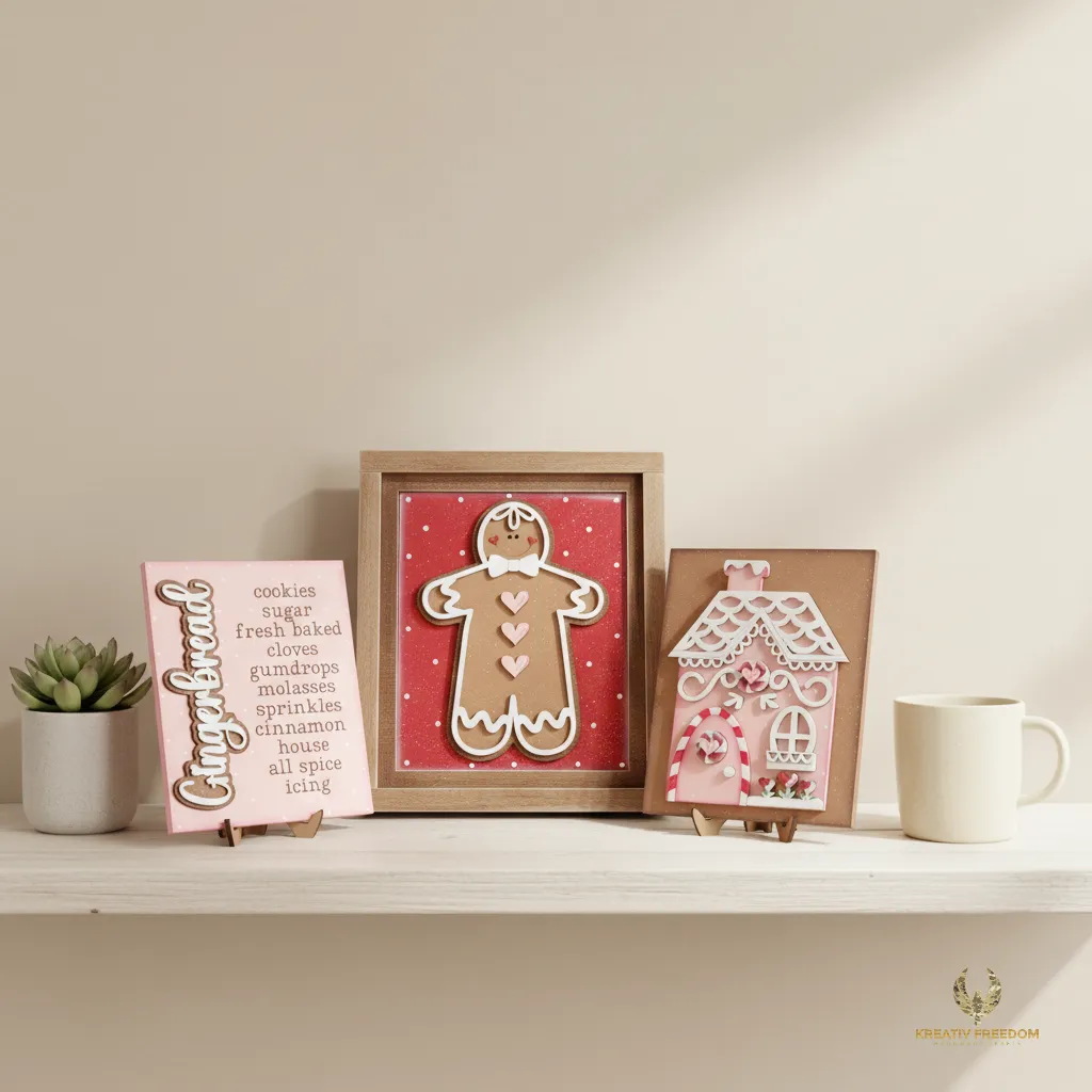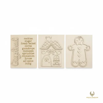 Elevate your holiday home styling with our Gingerbread Christmas Decor. This delightful trio of signs is perfect for creating a cozy, festive atmosphere on tiered trays, mantels, or as a charming centerpiece for your Christmas gatherings. Designed as part of the Kreative Freedom collection, these pieces capture the whimsical spirit of the season while providing a high-quality base for your artistic vision.