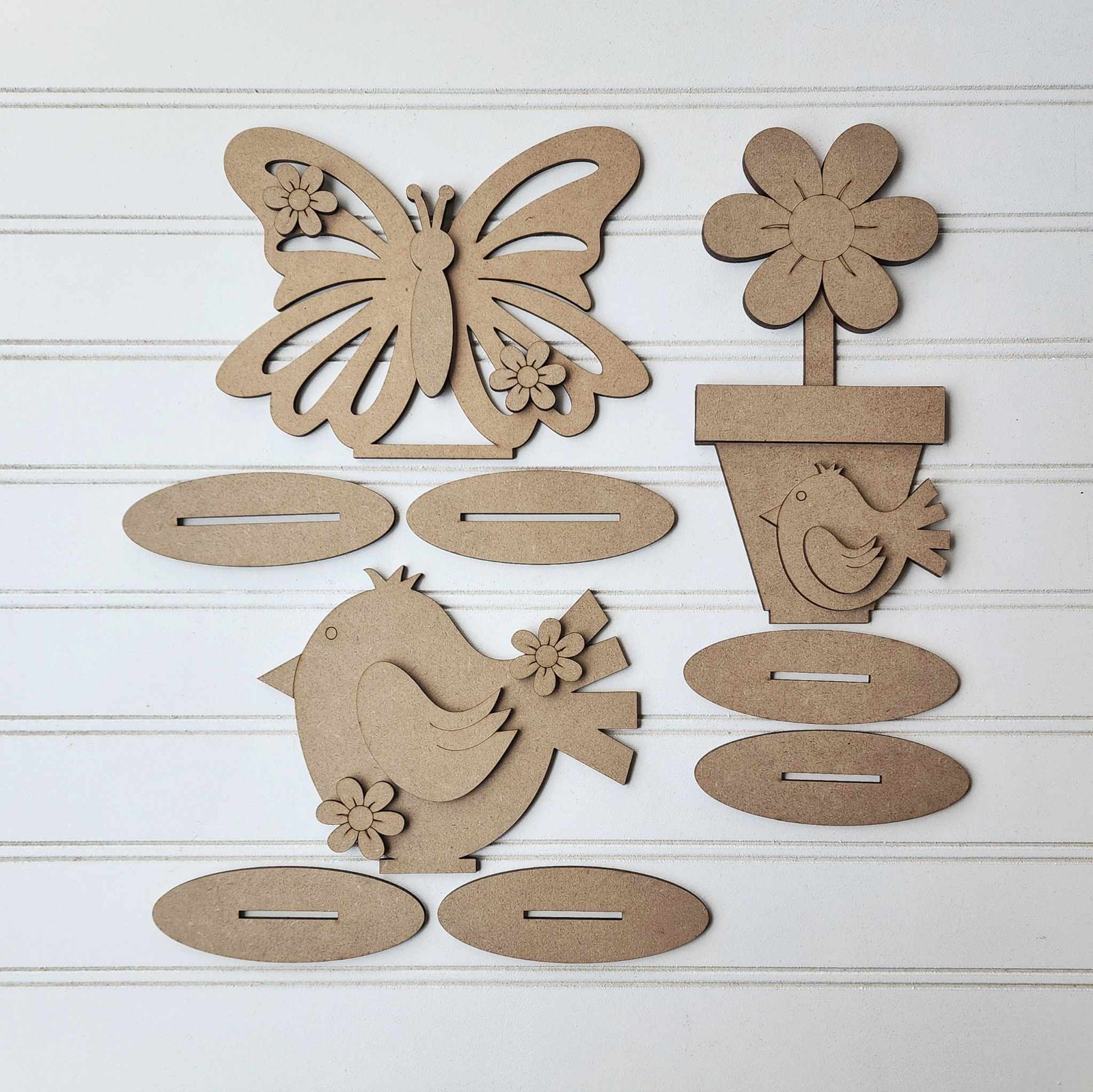 Unleash your creativity and customize this spring set to match your personal aesthetic. Once finished, these shelf sitters make thoughtful handmade gifts or high-quality additions to your own boutique decor collection.