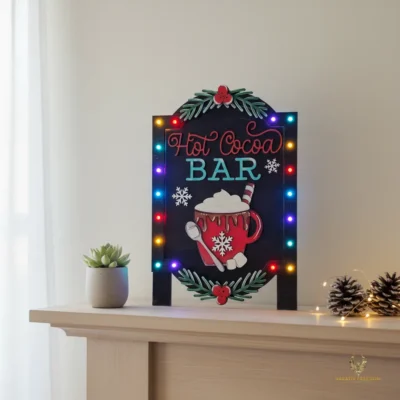 Add a touch of seasonal charm to your home with our Hot Cocoa Bar Shelf Sitter. Standing at 14 inches tall, this eye-catching piece is the perfect addition to a kitchen counter, coffee station, or fireplace mantle, creating an inviting atmosphere for the winter season.