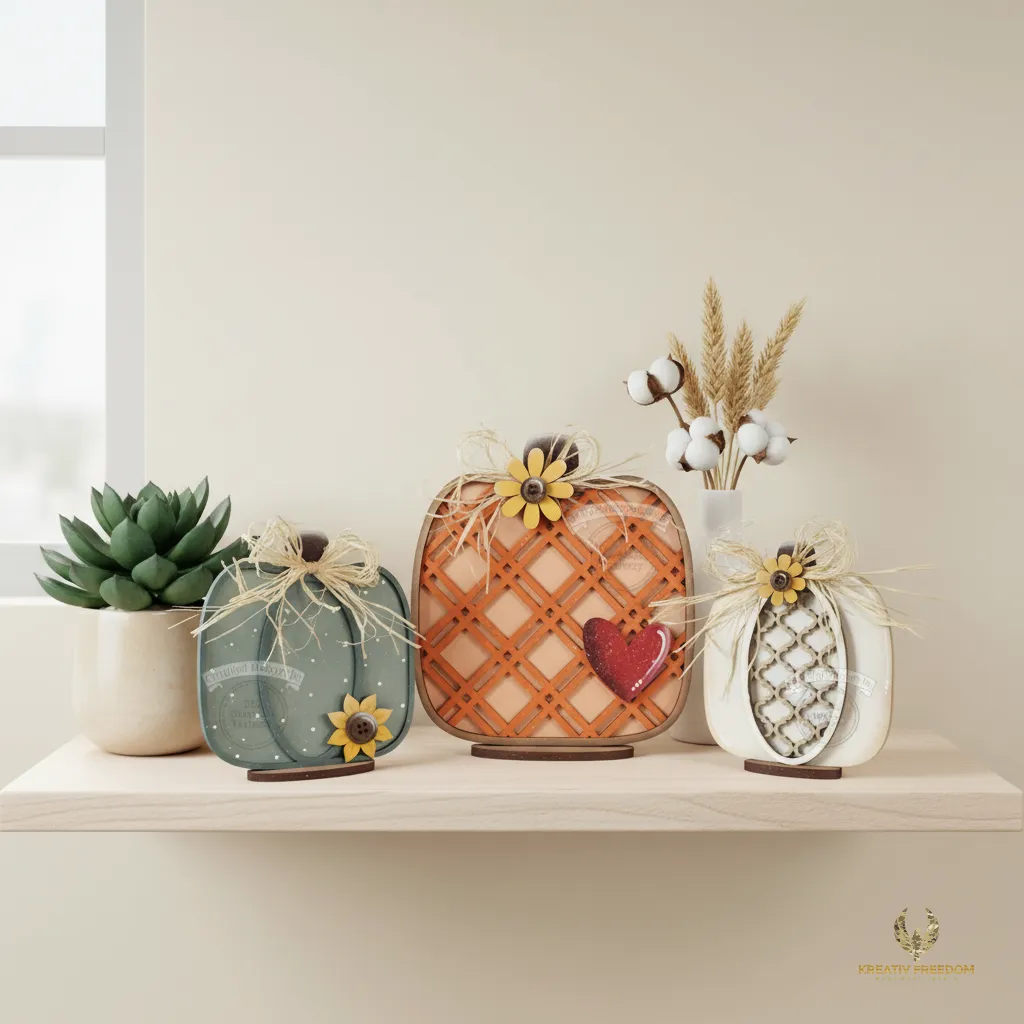 Embrace the cozy vibes of the season with our Pumpkin Shelf Sitter DIY Kit. Perfect for adding a personalized touch to your fireplace mantel, entryway table, or tiered tray, these Fall Harvest decorations bring the warmth of autumn right into your home. Each piece is designed to be easily customized, making it a fantastic activity for seasonal decorating or relaxing weekend crafting.