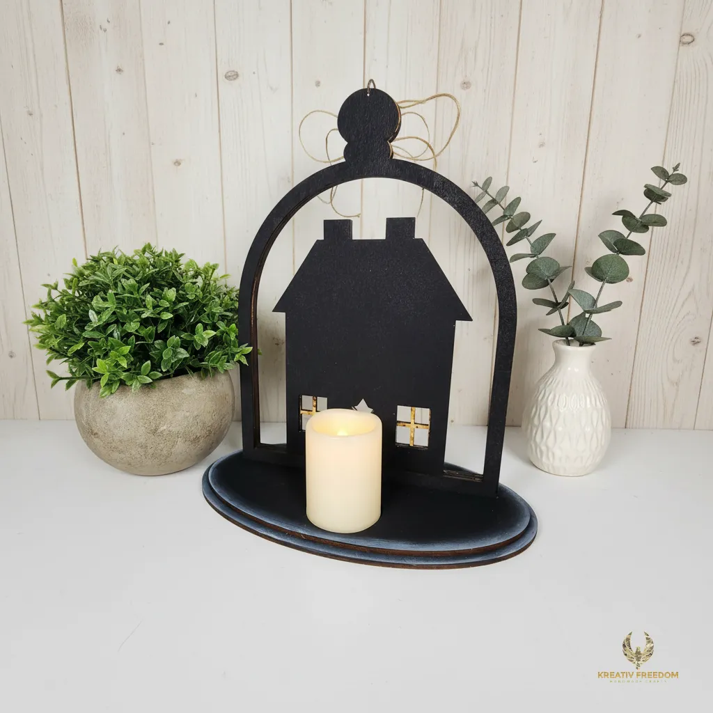 Create a charming folk art centerpiece with this precision-cut saltbox house kit. Perfect for candle displays or rustic shelf decor.