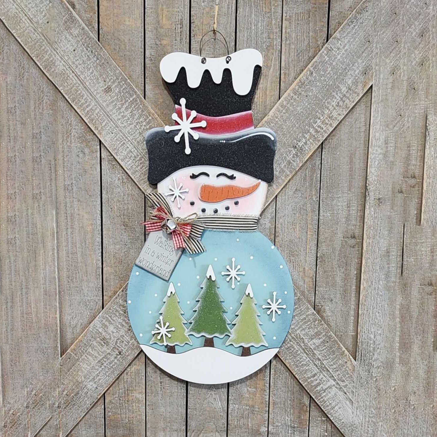 - Layered Winter Design — adds depth and dimension to your seasonal door display for a high-end feel.