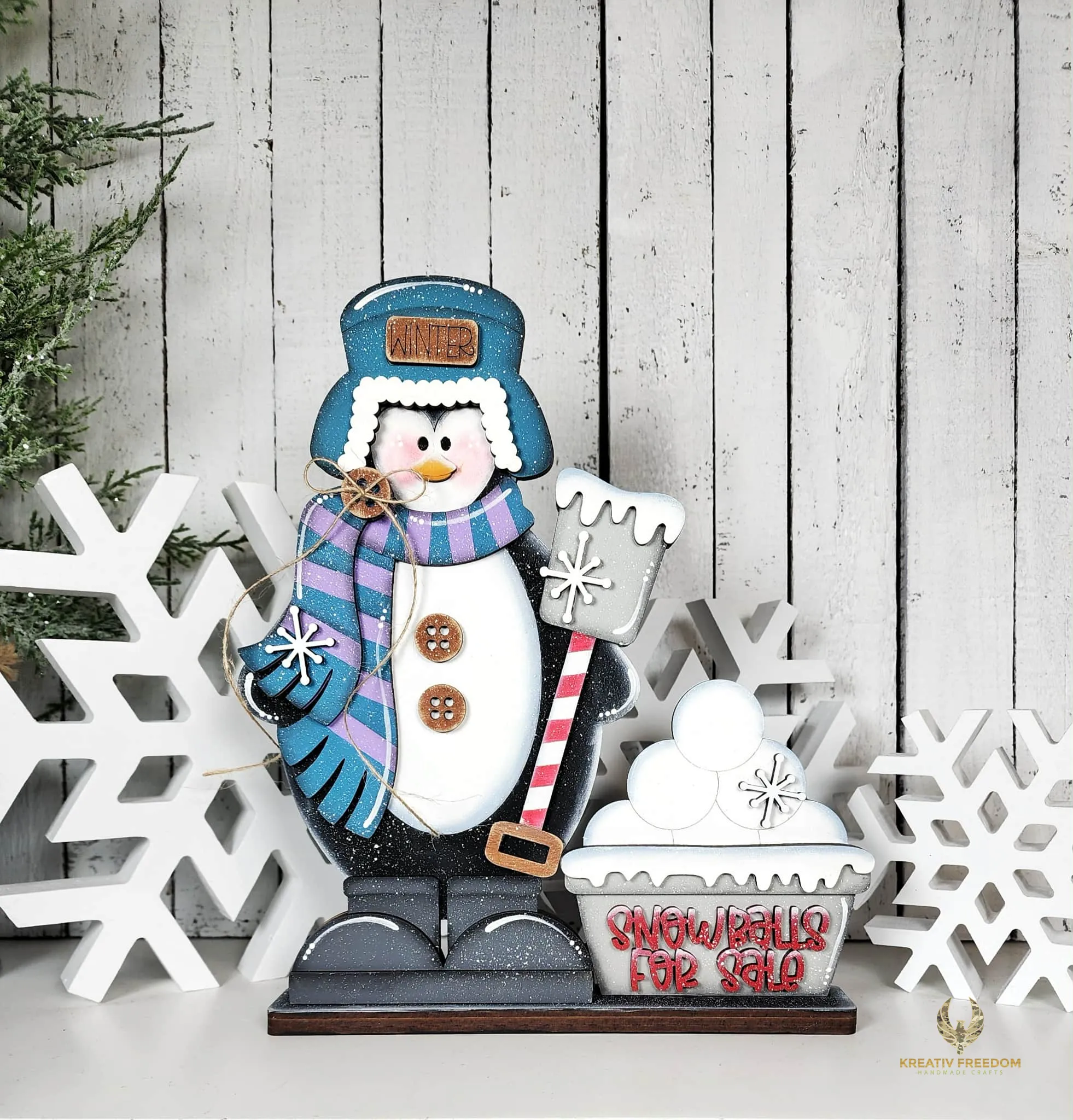 Add a whimsical touch to your seasonal displays with this Winter Penguin Decor kit. This charming standing penguin holding a snowball is the perfect addition to your winter mantel, tiered tray, or holiday centerpiece, offering a fun and creative way to celebrate the chilly season with a personalized touch.
