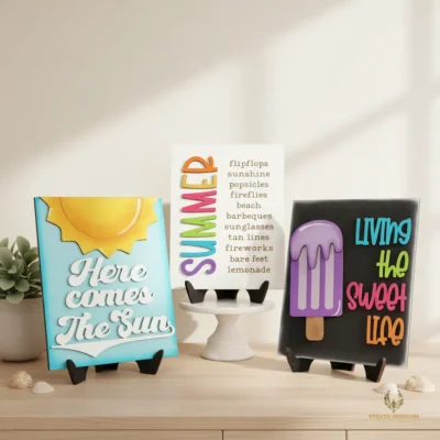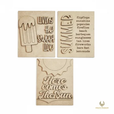 Bring the warmth of the season into your home with our Summer Sign Trio. Part of the May 2024 Kreativ Freedom collection, this set is designed to add a cohesive, seasonal touch to your tiered trays, mantels, or tabletop displays. Whether you are looking for a relaxing solo project or a fun activity for a summer gathering, these signs offer a delightful way to express your creativity.