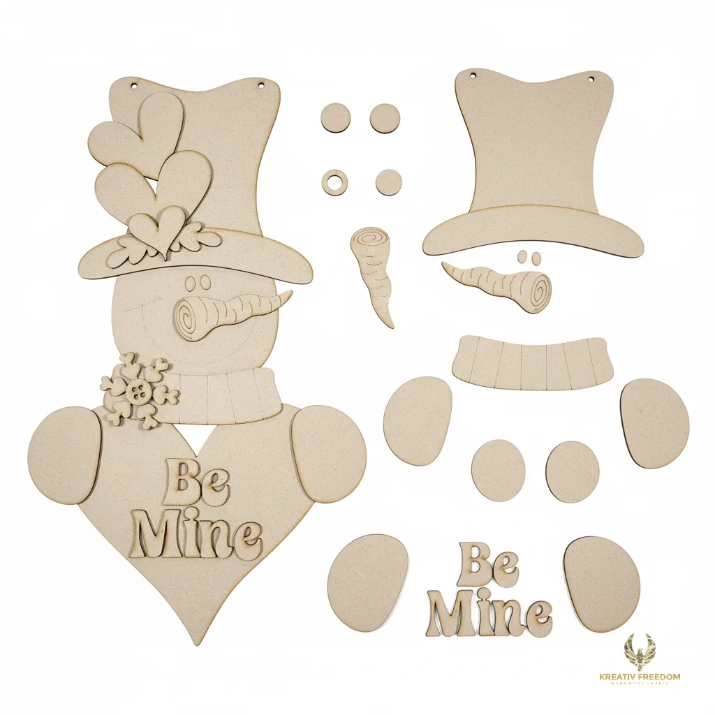 Valentine Snowman 18 Inch Door Hanger DIY Laser Cut Wood Kit