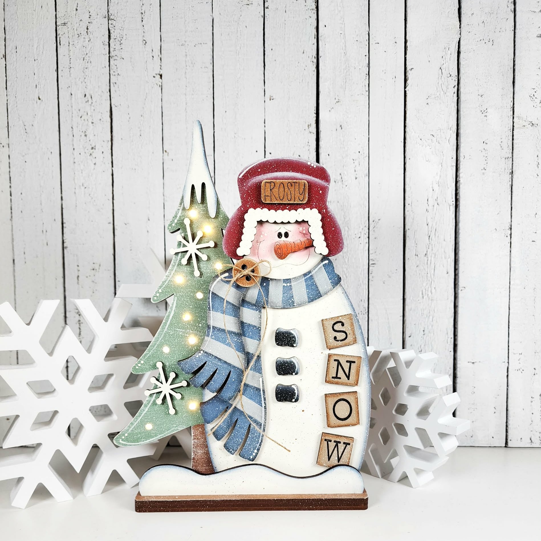 Bring a touch of frosty charm to your home with this Winter Snowman shelf sitter. This customizable wood kit is perfect for creating personalized seasonal decor for your mantel or desk.